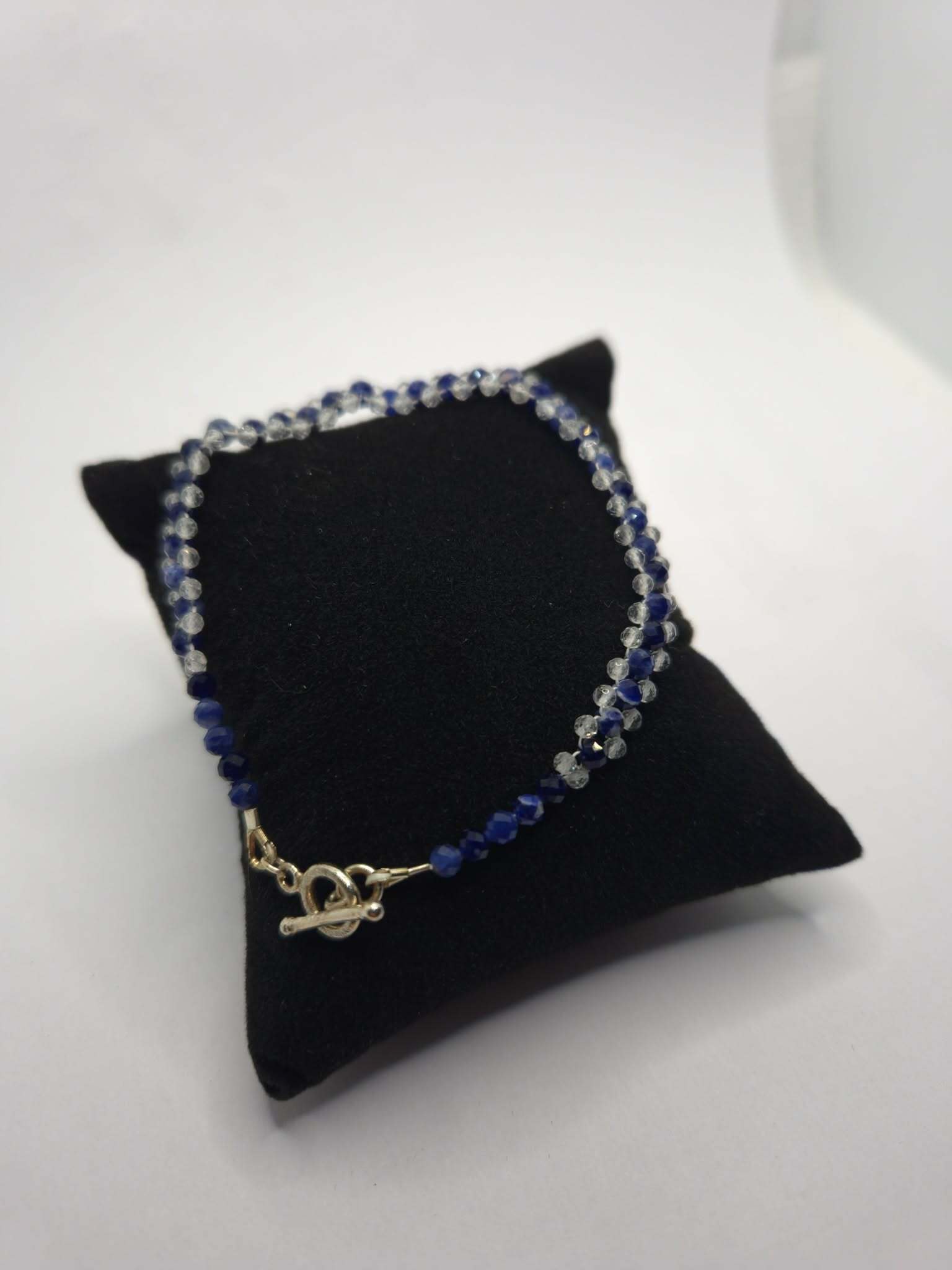 Materiał: sodalit kulka fasetowana 3 mm; topaz biały kulka fasetowana 2 mm