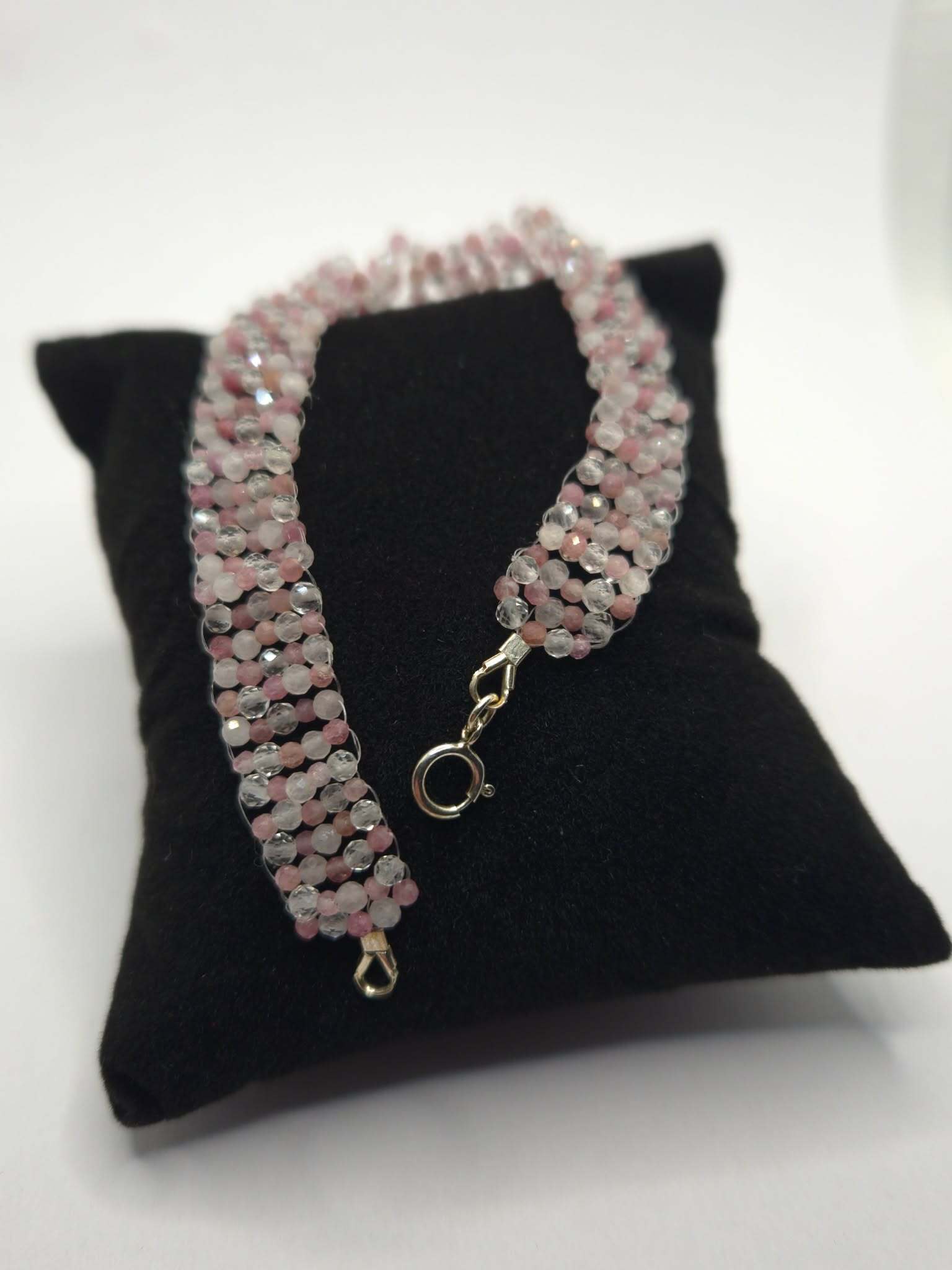 Materiał: Turmalin różowy kulka fasetowana 2,5 mm; Turmalin rubinowy kulka fasetowana 2 mm; Kryształ Górski kulka fasetowana 2,5 mm; Kwarc różowy kulka fasetowana 2 mm